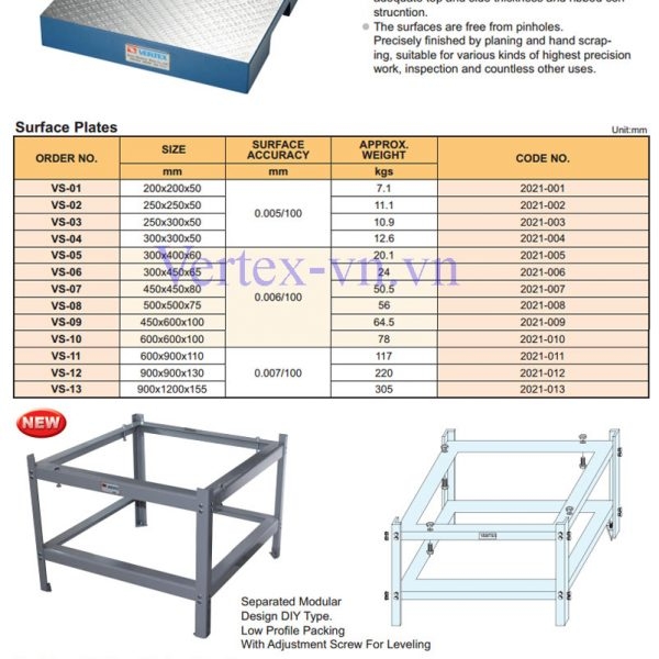 – Model chân bàn Máp tương ứng cho bàn Máp từ VS-09 ~ VS-13 tra theo catalogue.