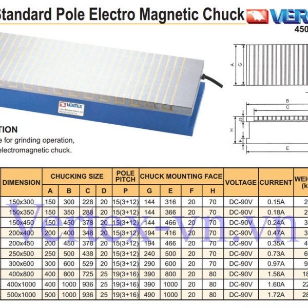 4. Bàn từ máy mài điện VEM-1530A, VEM-1535A, VEM-1545A, VEM-2040A, VEM-2045A, VEM-2550A, VEM-3060A, VEM-4080A, VEM-40100A, VEM-50100A của VERTEX: