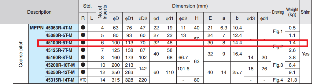 Đài Phay Mặt Phi 100 Gắn Mảnh KYOCERA MFPN45100R-6T-M