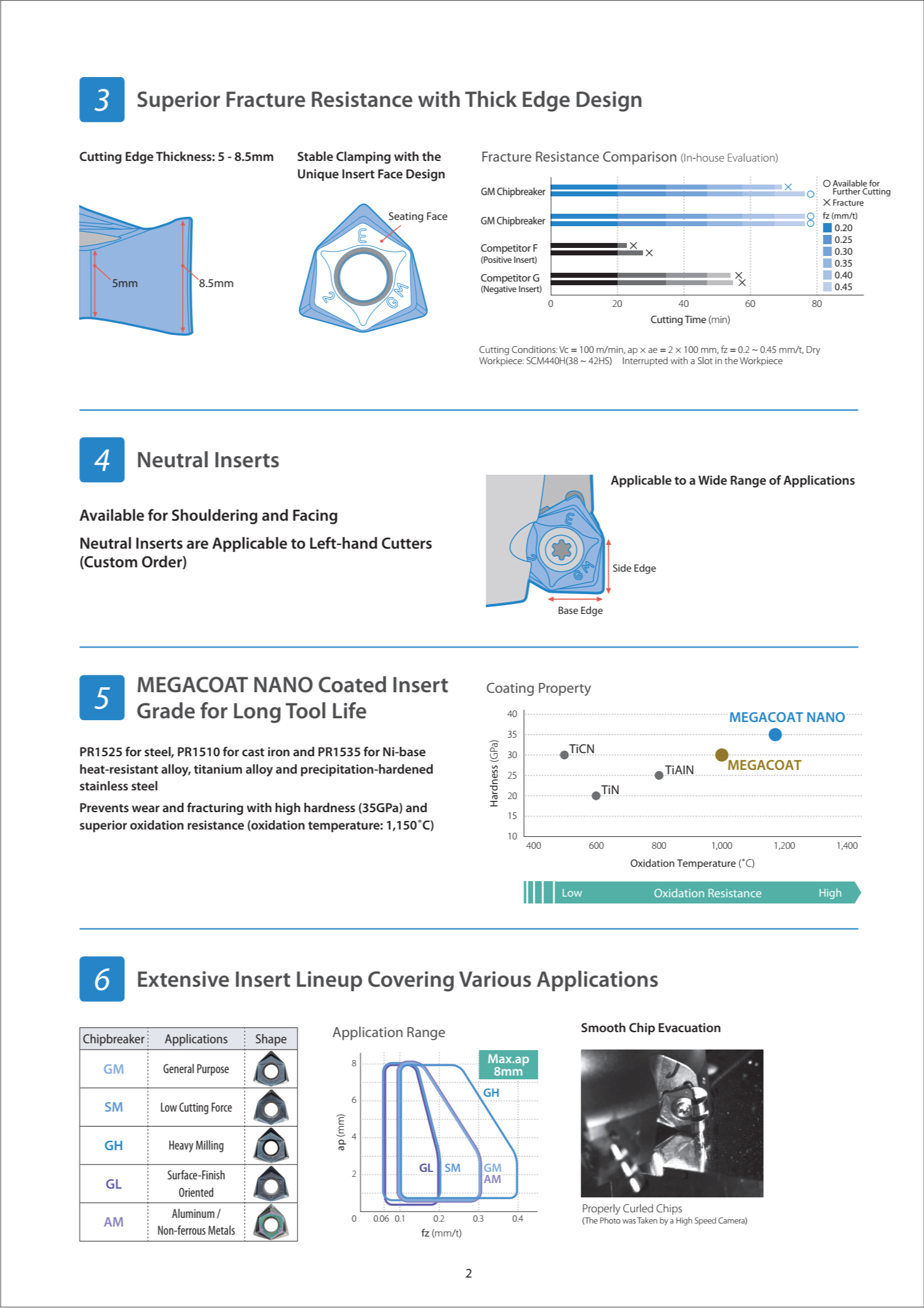 - Lớp phủ đa dạng PR1535 / PR1525 / PR1510 / CA6535 / PDL025 / GW25 ứng dụng phay thép, inox và gang, nhôm và thép sau nhiệt