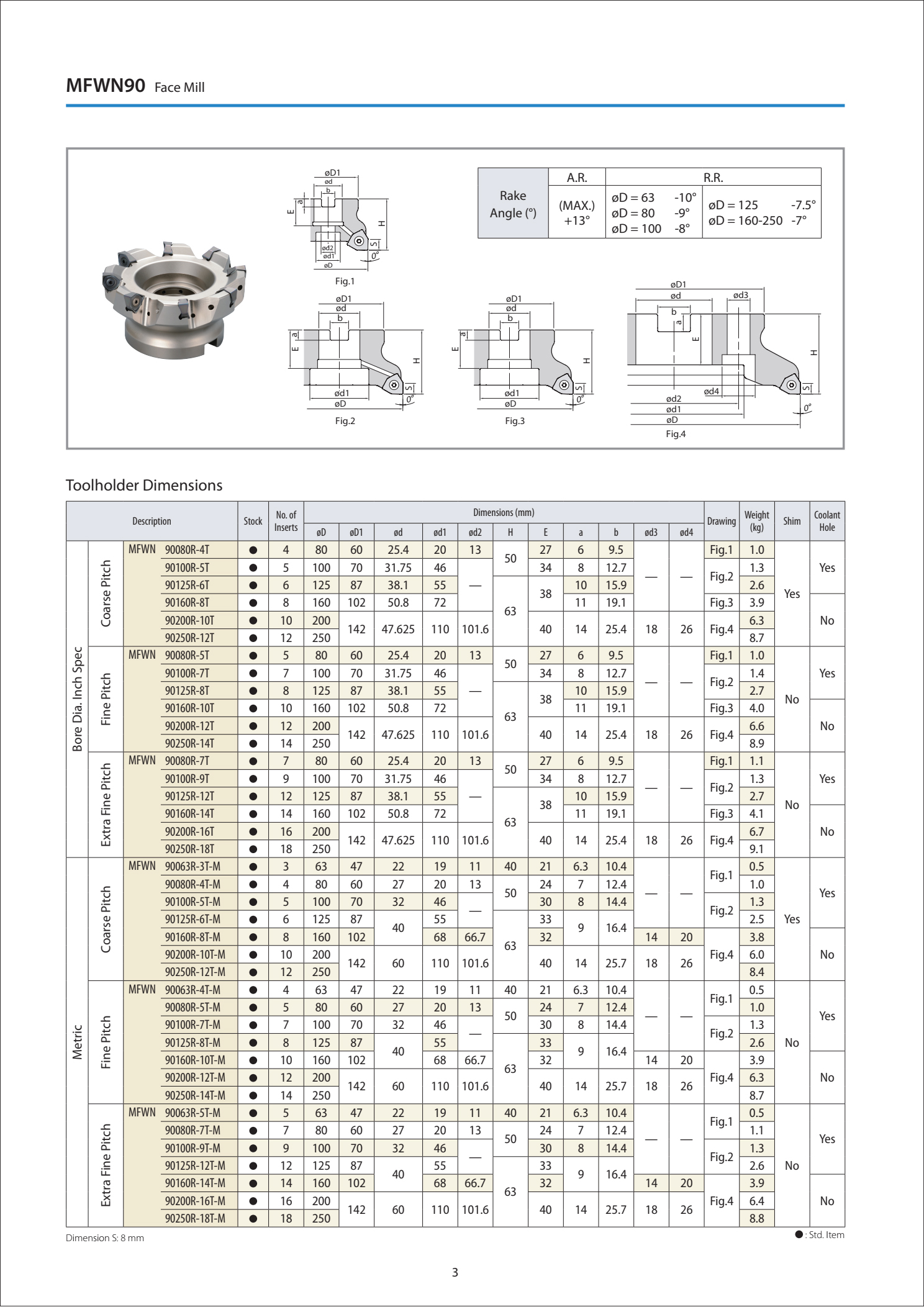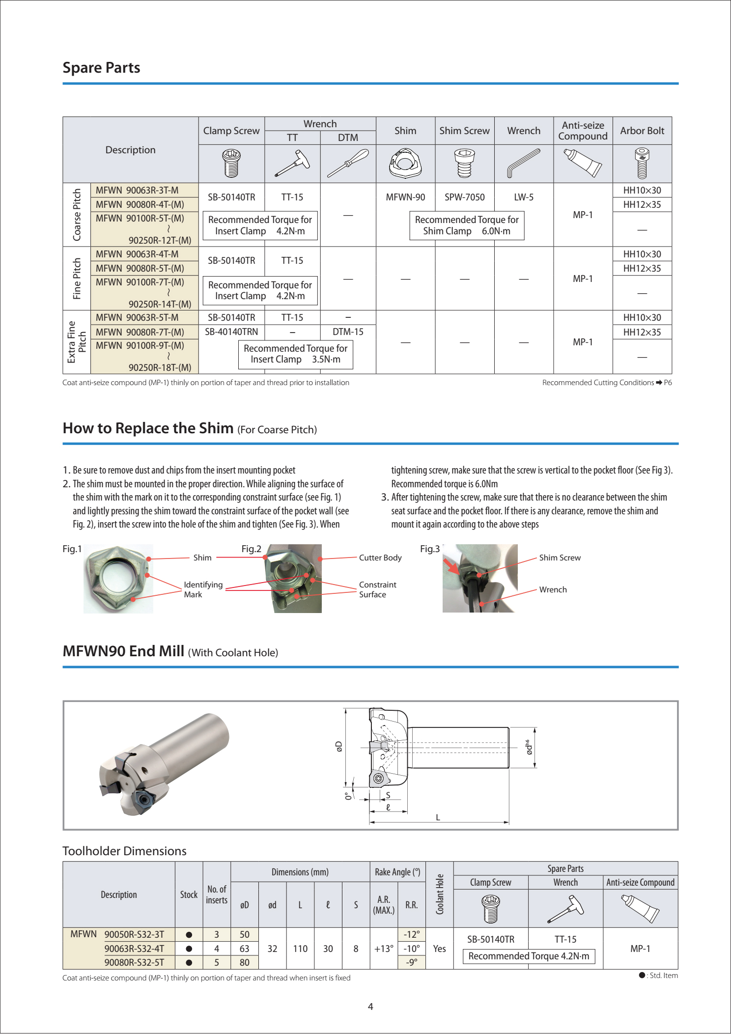 Dòng sản phẩm Dao Phay Gắn Mảnh Kyocera MFWN có các đặc điểm nổi bật dưới đây: