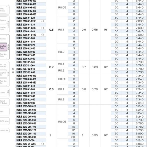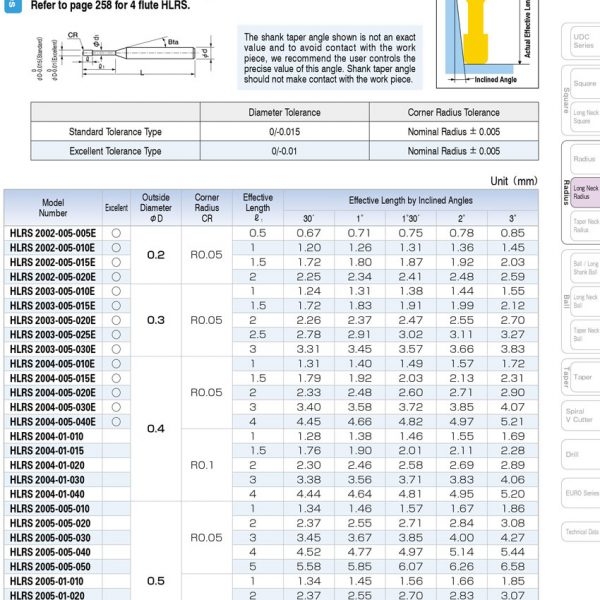 – Dao phay góc cổ dài hợp kim HLRS2000 của Union Tool – Nhật Bản chuyên dùng phay đồng và thép khuôn mẫu sau nhiệt có độ cứng cao từ 40HRC – 65HRC, bao gồm các vật liệu như: NAK, HPM, STAVAX, SKD11, HAP10, HAP72,…