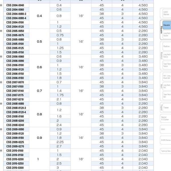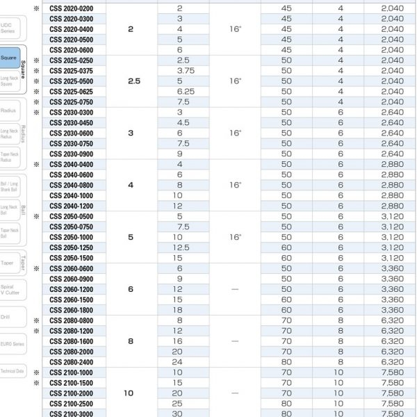– Chế độ cắt của dao phay CSS được hãng Union Tool tính toán cho từng vật liệu. Hãy liên hệ với chúng tôi để chúng tôi gửi bảng chế độ cắt cụ thể cho từng vật liệu.