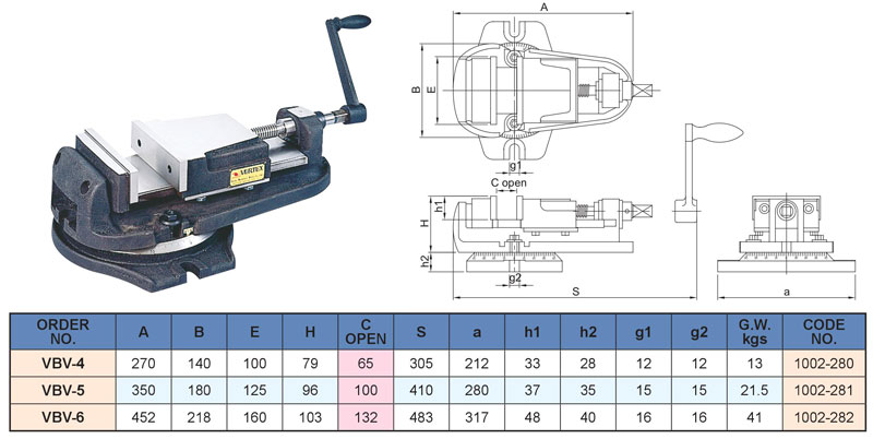 – Ê tô máy phay kiểu B: VBV-4, VBV-5, VBV-6 có các rãnh khía để dẫn dầu thu dầu, có đáy ê tô rộng nên cho lực kẹp lớn hơn. Độ mở tối đa lên đến từ 65 đến 132 mm.