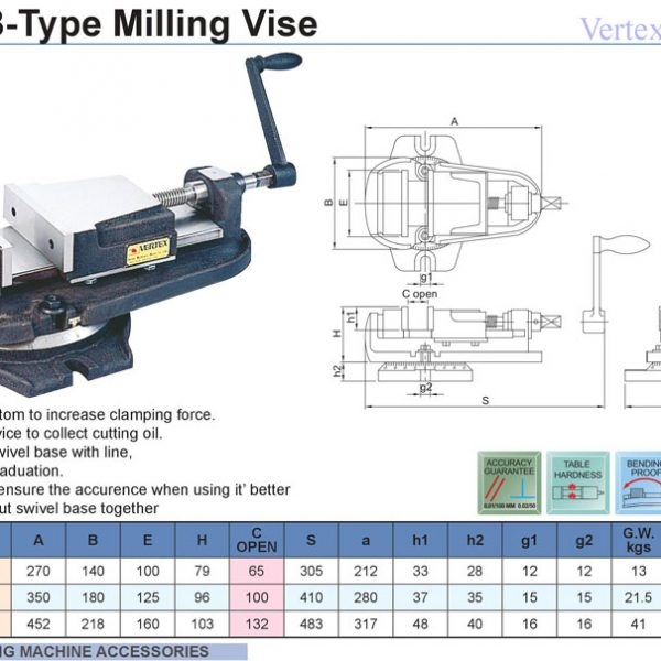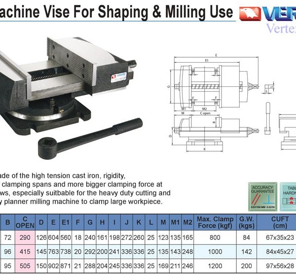 – Ê tô máy phay là một đồ gá cơ khí vạn năng thông dụng để gá kẹp phôi trên máy phay. Có 5 dòng ê tô máy phay kẹp kiểu cơ khí điển hình của hãng VERTEX sản xuất như sau: