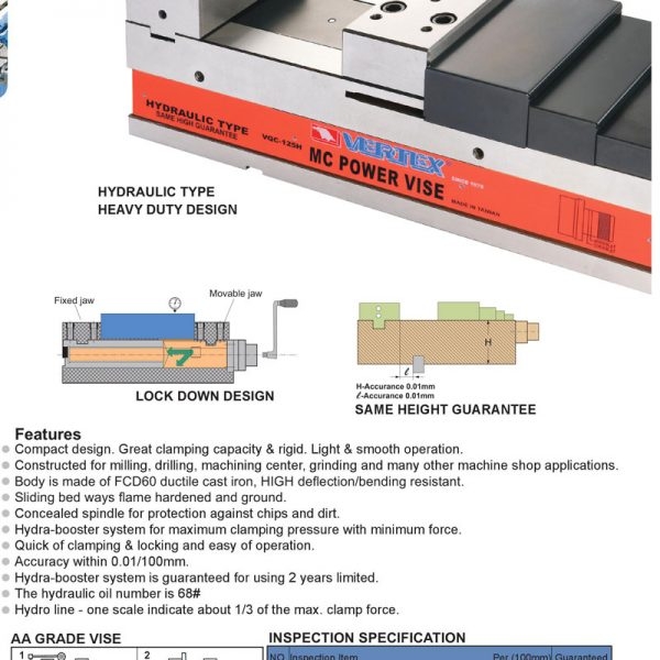 – Trong các dòng ê tô thủy lực của Vertex, thì dòng ê tô thủy lực VH có kết cấu đơn giản và giá rẻ nhất. Dòng ê tô thủy lực VQC có độ bền cao, thiết kế theo tiêu chuẩn của Nhật và Châu Âu.