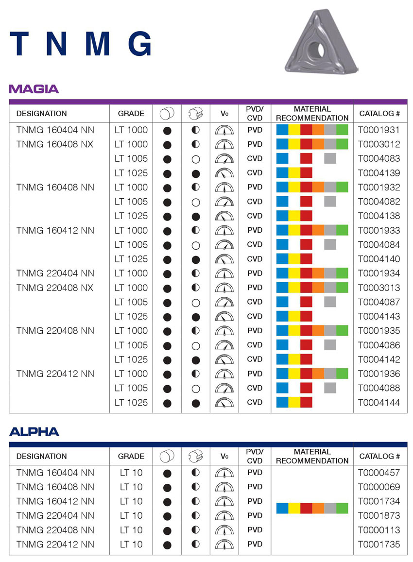 Đặc tính sản phẩm mảnh tiện tam giác TCMT; TNMA; TNMG; TNMP; TNUX; TPMR:
