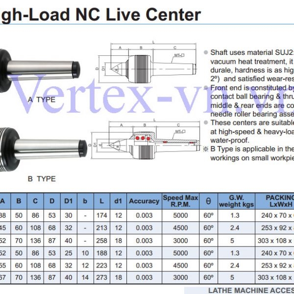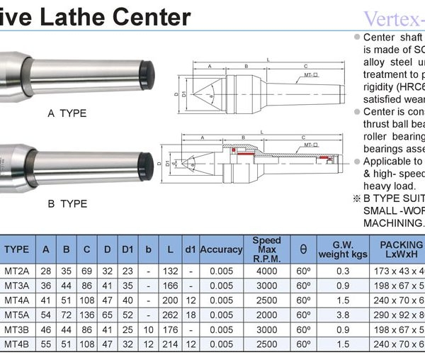 3. Mũi chống tâm máy tiện quay tốc độ cao VLC-MT3A, VLC-MT4A, VLC-MT5A, VLC-MT6A, VLC-MT3B, VLC-MT4B, VLC-MT5B của VERTEX: