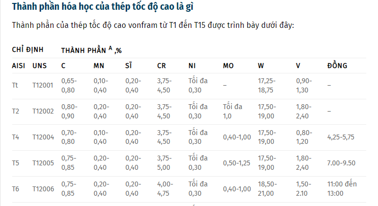 Thép tốc độ cao là thép công cụ ứng dụng trong máy công cụ có tỷ lệ loại bỏ vật liệu cao. Thép tốc độ cao vonfram (nhóm T) và thép tốc độ cao molypden (nhóm M) là hai loại thép tốc độ cao. Hai nhóm thép tốc độ cao này có khả năng làm cứng tương tự và các đặc tính khác.